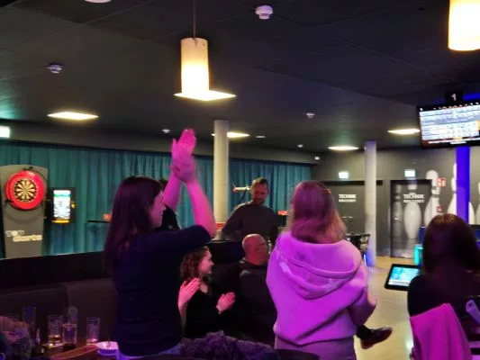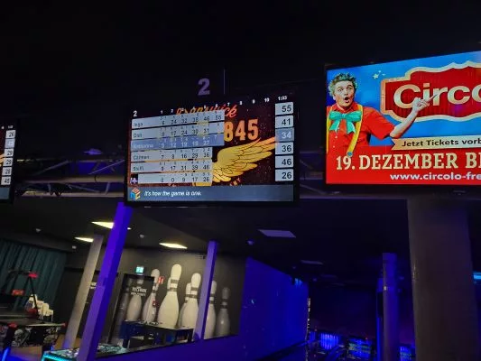 Nachdem sich jeder ein paar Spezial-Schuhe ausgeliehen hatte wurden die Bahnen für uns frei geschalten.