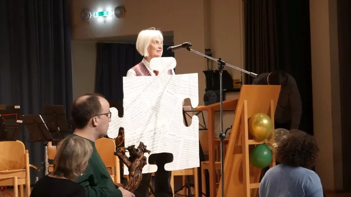 Für den Musikverein brachte die Vorständin Öffentlichkeitsarbeit Karin Eberlin ein großes Puzzle-Teil mit: